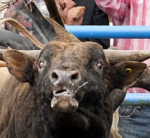 While bulls can exhibit aggressive behaviour, they are not the inherently “mean” or “ornery” animals described by PBR promoters.  Their levels of aggressive behaviour are determined by a mix of breeding and environment. For example, if they are isolated from the herd and put in an unfamiliar setting they are likely to be more aggressive.  Otherwise, aggressive behaviour is manifested when bulls are provoked – such as being mounted by an unwanted rider or stressed by a flank strap.